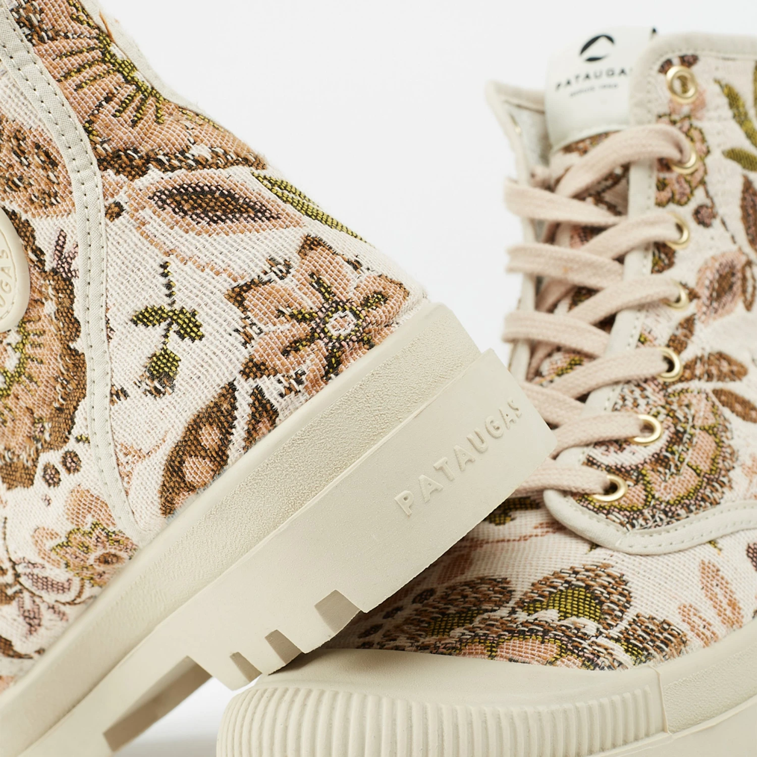 Craquez pour l’originalité avec la boots pour femme Authentique qui cette saison se pare d’un tissu jacquard fabriqué en France. Les motifs floraux sont très tendances et frais pour la saison. Cette chaussure est vulcanisée dans une semelle en caoutchouc naturel ce qui la rend légère et très confortable.
