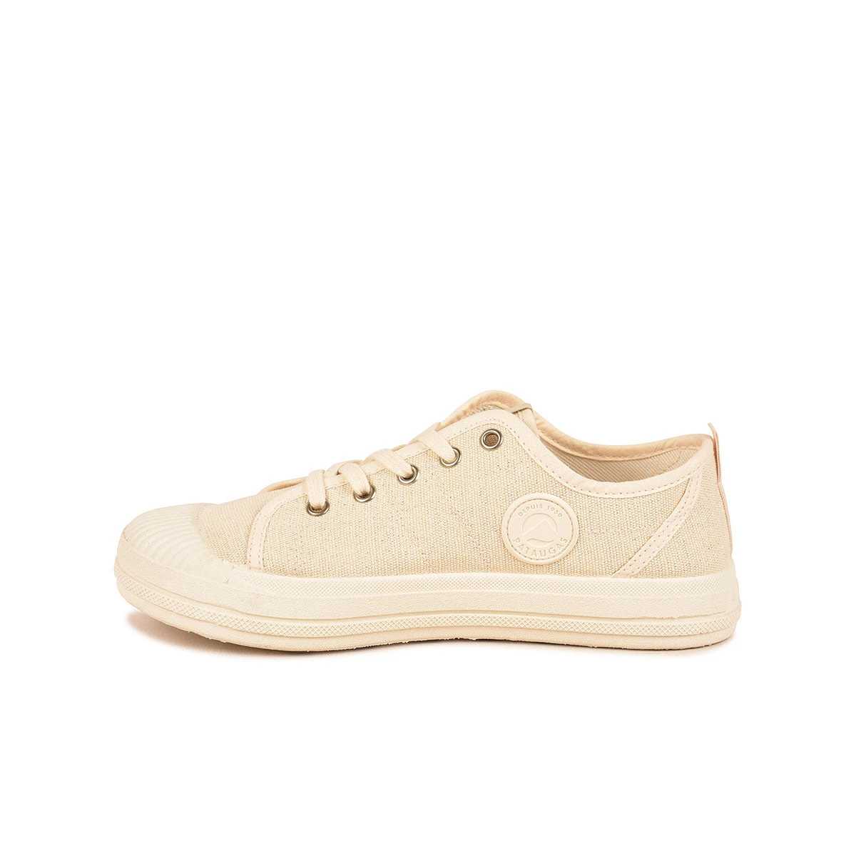 Laissez vous séduire pour la basket basse femme en toile irisée écru. Cette chaussure très originale grâce à sa toile 100% recyclée et son fil lurex coloris écru, montée sur une semelle injectée et en caoutchouc naturel, saura vous apporter confort et légèreté lors de vos balades estivales. Elle s’accordera avec toutes vos tenues de la saison. Petit plus, sa semelle intérieure est amovible donc très pratique si vous souhaitez insérer vos propres semelles.